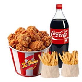 15 Ailes épicées + 2 Frites + Sauce au choix + Coca cola 1.25l.